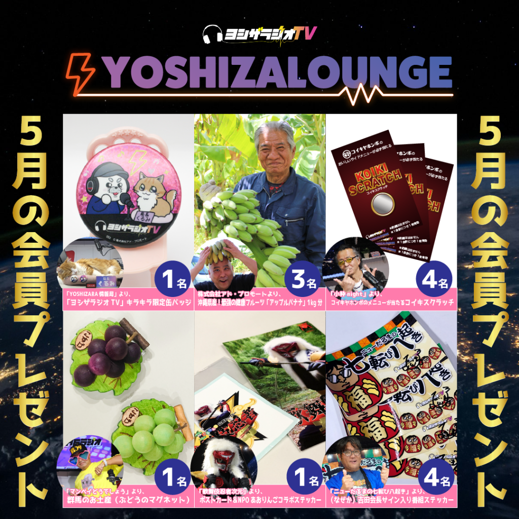 ヨシTHEラウンジ5月抽選会結果発表! ※敬称略